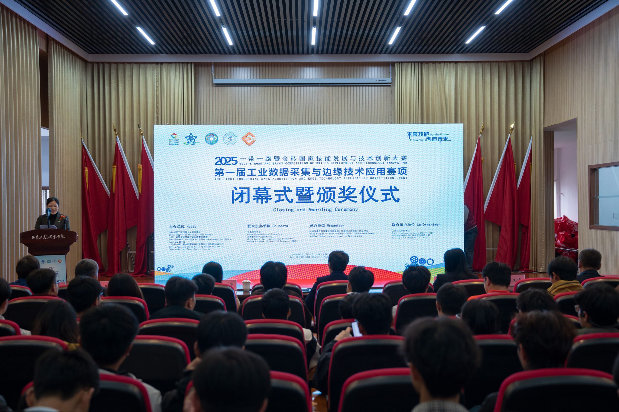 10月20日,2025一带一路暨金砖国家技能发展与技术创新大赛第一届工业数据采集与边缘技术应用赛项(高职组、教师组决赛)闭幕式暨颁奖仪式在山西工程职业学院图书馆四楼学术报告厅举行。历经5天的赛事筹备与激烈比拼,来自全国的100余支参赛队伍围绕工业互联网核心技术完成专业竞技,为高端制造产业数字化人才培养注入新动能。赛项执委会、承办院校竞赛组织领导机构成员、裁判长、仲裁长等成员,各省市参赛队领队、获奖选手和指导老师等相关人员出席闭幕式。