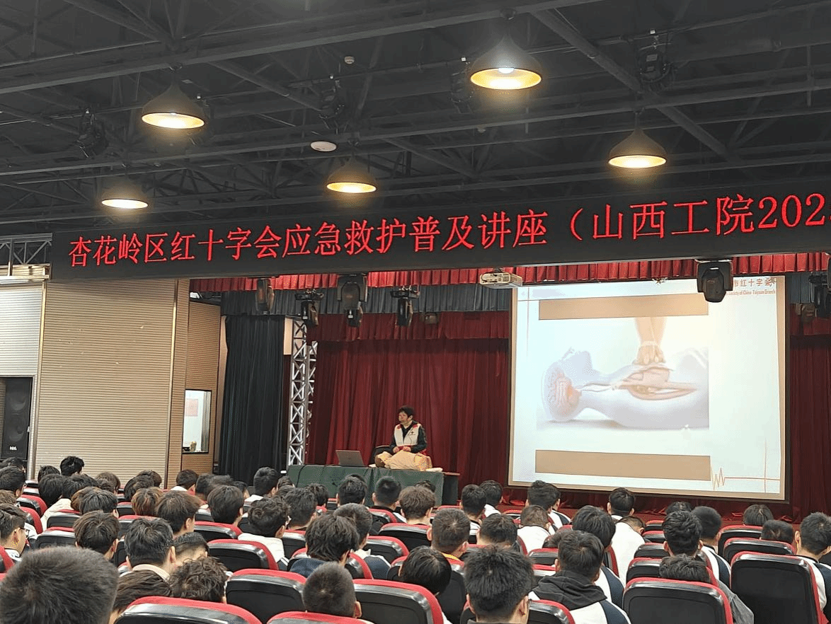 10月17日,杏花岭区红十字会会长许爱菊应邀在龙潭校区图书馆八层报告厅,为新生带来了首场讲座。紧随其后,10月20日下午3点,小店区红十字会会长张鹏在唐槐校区足球场进行了同样主题的宣讲。两场讲座均聚焦于日常生活中至关重要的急救技能。