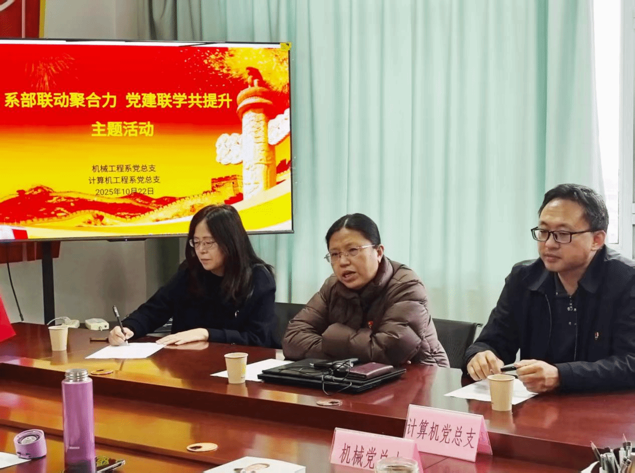 为积极探索新时代高校基层党建工作新路径,加强系部间交流协作,10月22日,机械工程系与计算机工程系在机械工程系党建活动室联合举办了“系部联动聚合力 党建联学共提升”主题党建联学活动。 活动由机械工程系党总支书记马存建和计算机工程系党总支书记黄华共同主持,两系领导班子成员及党员代表共同参加。