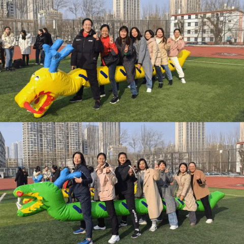 活动现场,老师们热情高涨,积极参与了旱地龙舟、摸石头过河、袋鼠接力跳的游戏,展现了教师们的青春活力。