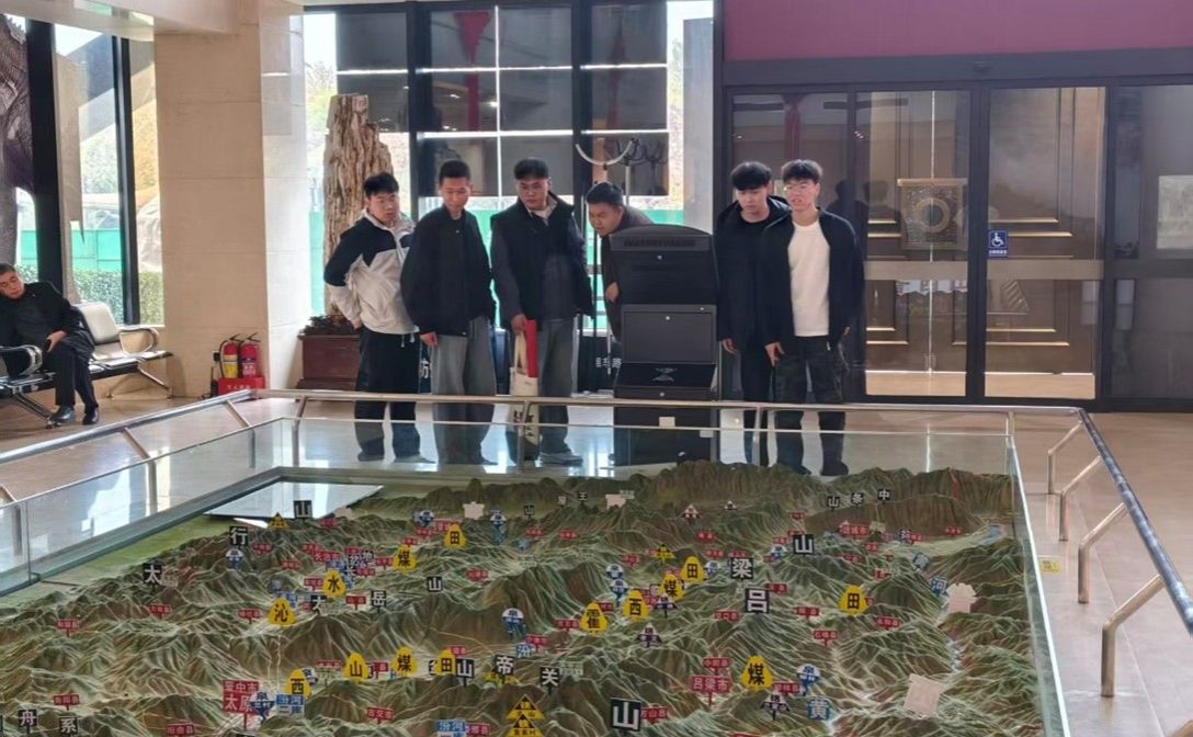 一踏入博物馆,师生们便仿佛步入了表里山河的“自然史诗”,一幅幅勾勒山西地质演变的图景、一件件记录亿万年矿藏形成的标本、一个个再现资源开发历程的场景,瞬间引人入胜。同学们沿参观路线,从宏大的山西地形沙盘到琳琅满目的矿物标本展区,从系统的煤炭资源介绍到震撼的古生物化石陈列,开启了一场沉浸式的自然探索之旅。
