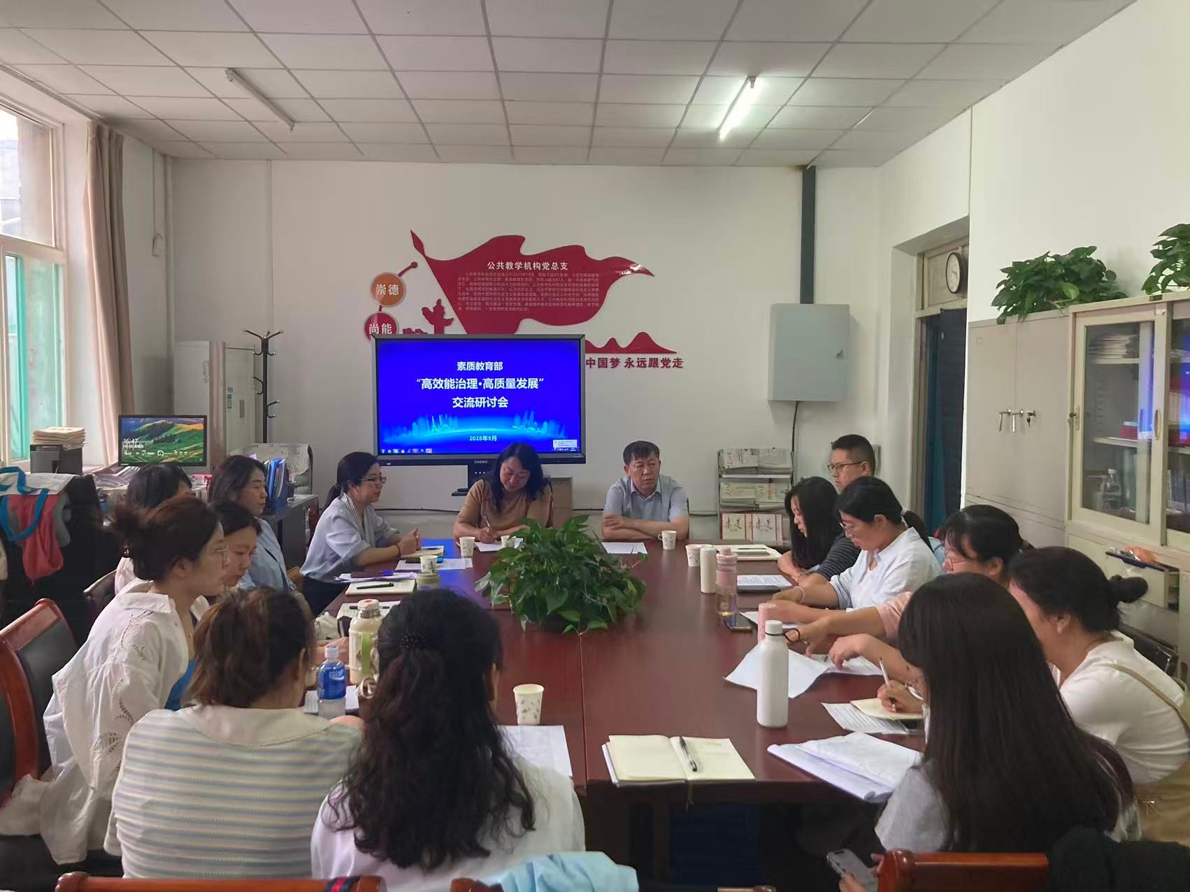 根据学院安排,素质教育部于9月4日下午在实验楼一层基础部办公室开展“高效能治理·高质量发展”交流研讨会。素质教育部全体教职工参加了会议,徐洪波副院长莅临指导。