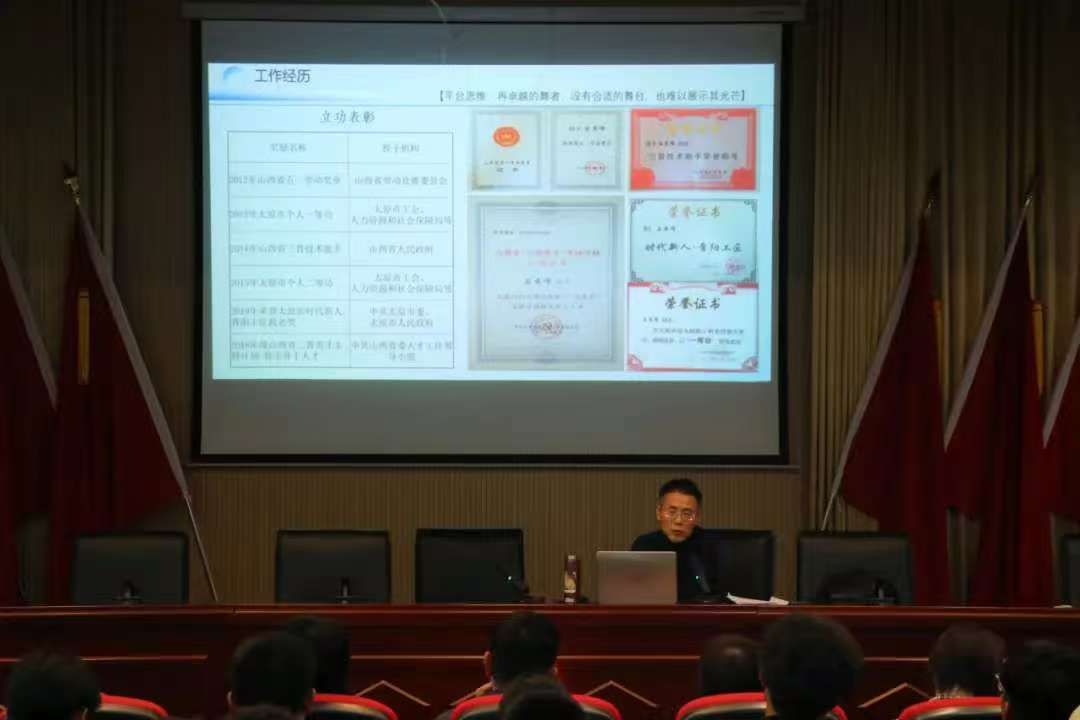 电气工程系于10月31日在图书馆四层报告厅举办“扬工匠精神 展校友风采——解读技能型人才成长密码”主题讲座,电气工程系党总支书记肖占胜、主任孔红、党总支副书记纪郑瑜、副主任杜相如、薛君,以及电气工程系教师代表和学生代表到场聆听。电气工程系党总支书记肖占胜主持本次活动,太钢集团高级工程师石秀峰担任本期主讲。