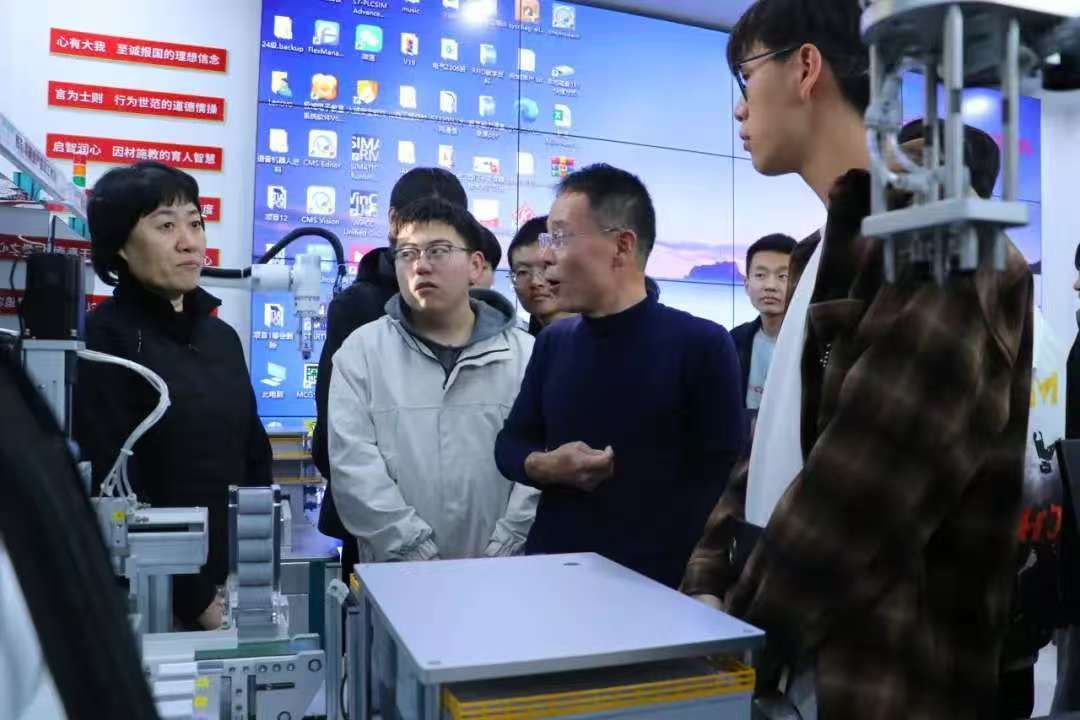 讲座结束后,石秀峰与师生代表一同参观了电气工程系实训室,并开展面对面专业交流。面对同学们关于“校内实训设备是否与企业接轨”“如何提升实践能力”等问题,他结合企业实际,耐心细致地一一解答。他充分肯定了学校实训平台的建设成果,认为其为学生职业能力培养和高质量就业奠定了坚实基础。