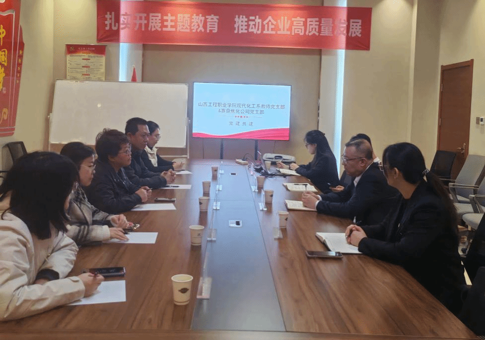会上,赛鼎焦化公司党支部书记杨永刚首先对企业发展历程、赛鼎焦化公司党支部及生产经营重点方向进行介绍,重点分享了企业在“党建+化工生产”、“党建+技术创新”等领域的实践经验。随后,我系教师党支部书记苏英兰介绍了教师支部在党建引领教学科研、人才培养及社会服务方面的工作成效,强调了校企党建融合共建的重要性。