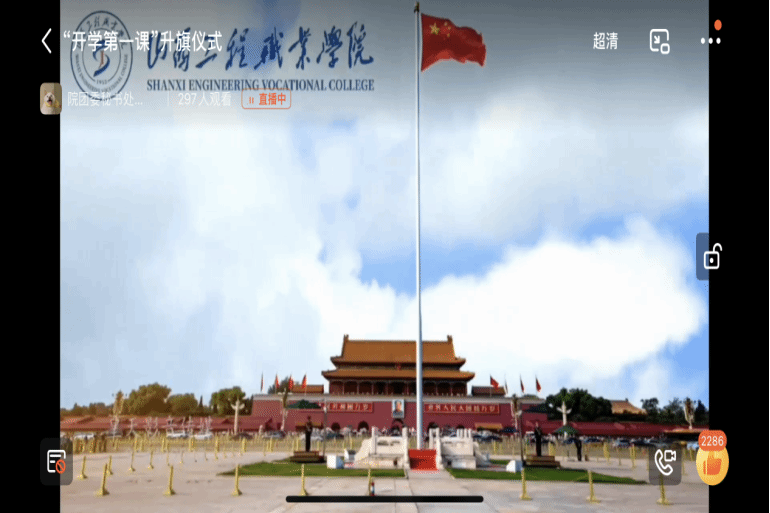 为激励我院广大学子们以饱满的精神状态投入到新学期的学习和生活中,鼓足干劲,砥砺奋进,共同迎接新的开始,我院团委于9月5日早上7:00在钉钉上以直播形式组织开展了“开学第一课”线上升旗仪式,院系级学生干部及各系学生代表参加。