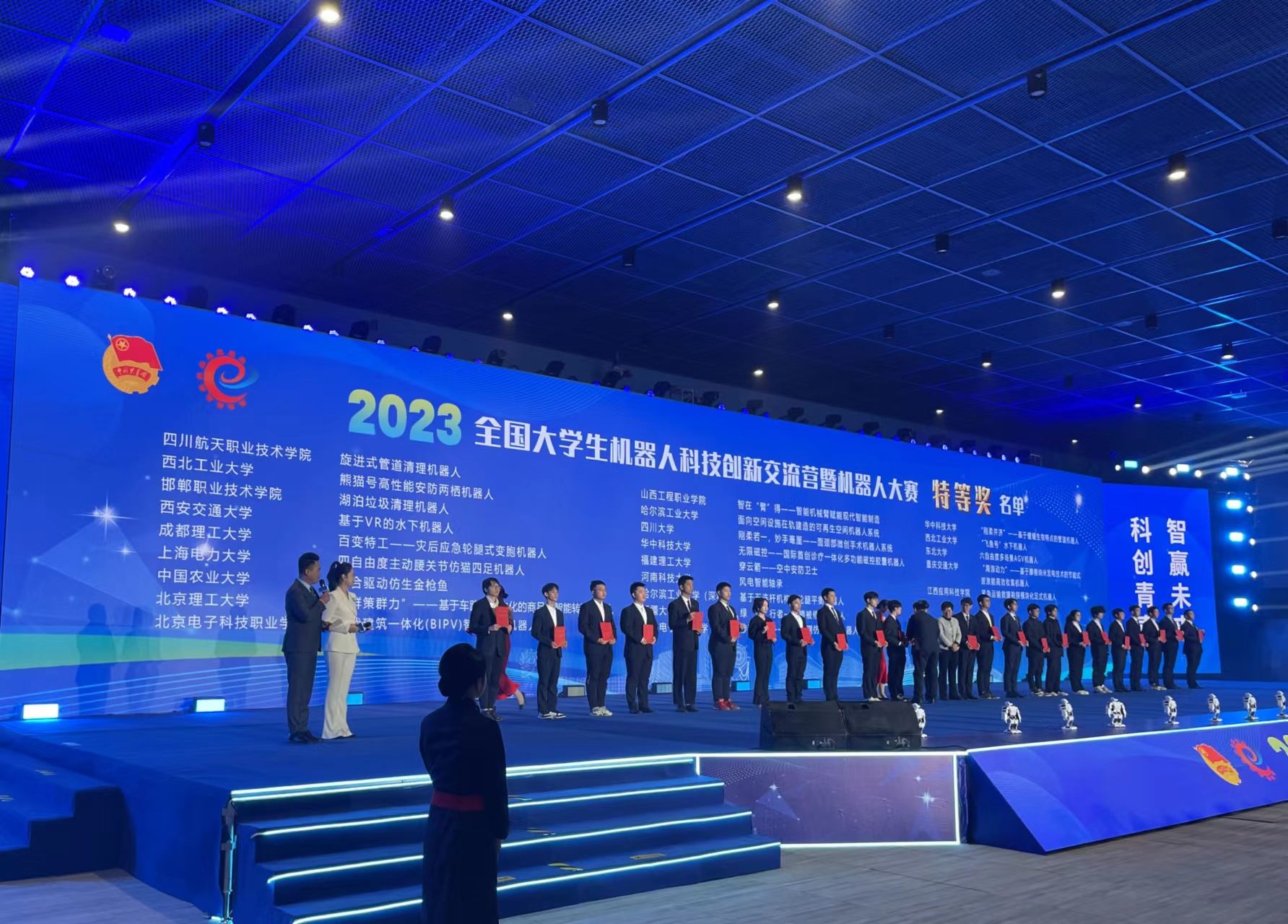 12月19日下午,共青团中央、工业和信息化部共同主办的2023年全国大学生机器人科技创新交流营暨机器人大赛决赛在山东日照落下帷幕。在共青团山西省委的精心指导和大力支持下,由我院团委推选、电气工程系提交的智在"臂"得﹣﹣智能机械臂赋能现代智能制造项目,经过激烈角逐,在全国431所高校1017件作品中脱颖而出,荣获特等奖奖项。取得了我院在大学生机器人科技创新方面全国最好成绩,也是此次大赛山西省高校唯一特等奖,实现历史性突破,充分展示了学院创新人才培养成果和学生学术科技创新实力。