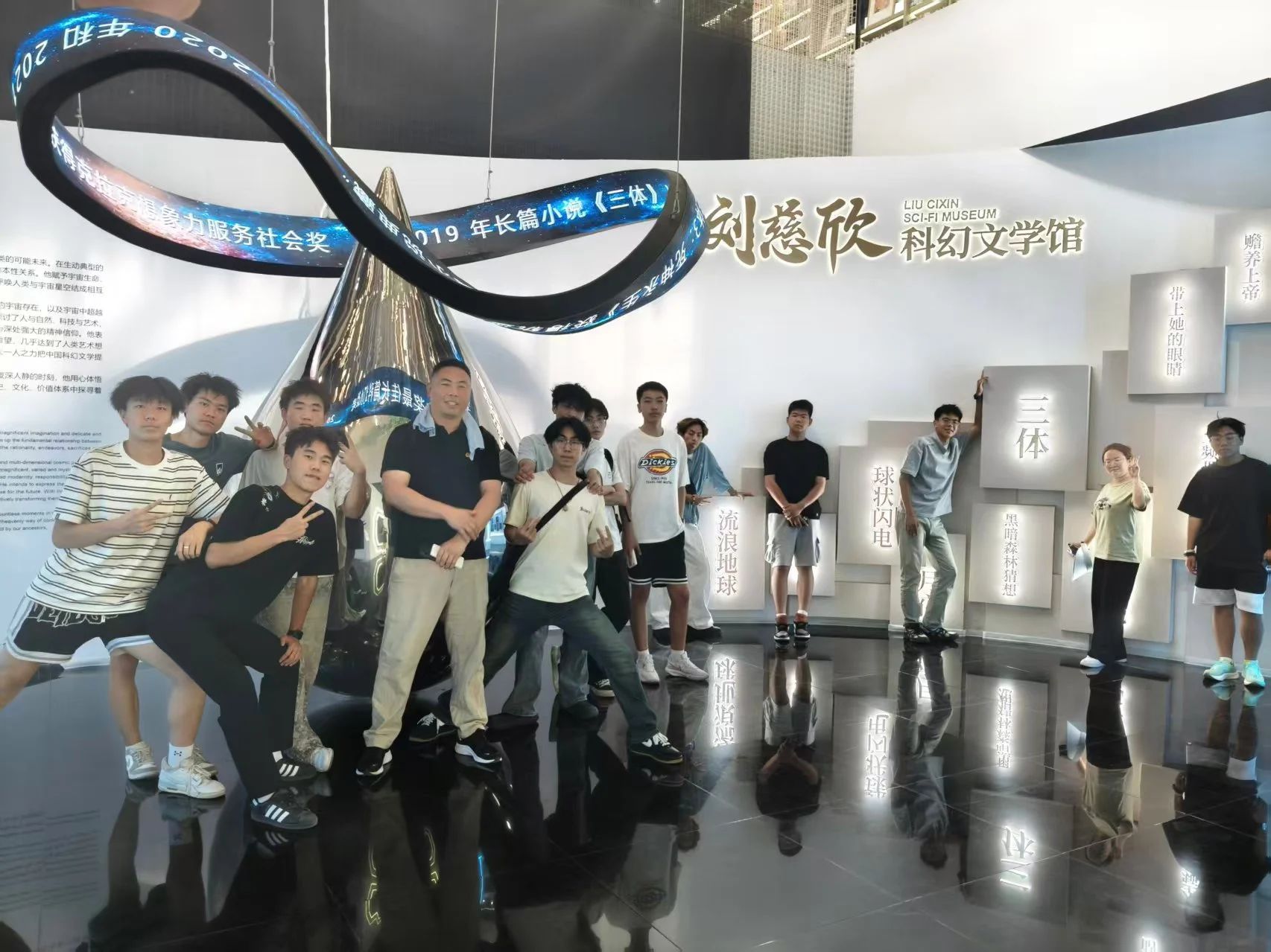 上午,实践团来到阳泉记忆·1947文化园,馆内丰富的展品和场景复原,生动展现了阳泉自1947年以来的发展历程。成员们穿梭在历史的长廊中,感受着城市在岁月变迁中的蓬勃发展,深刻体会到红色精神对城市建设的强大推动作用。在文化园内,实践团还特别参观了刘慈欣科幻文学馆。馆内陈列着刘慈欣创作的经典作品手稿、书籍译本,以及科幻作品影视化改编的珍贵资料,通过沉浸式的科技展陈手段,展现出科幻文学的独特魅力。成员们惊叹于刘慈欣天马行空的想象力,也深刻认识到阳泉这片土地不仅孕育了深厚的红色文化,更在新时代催生出充满创新活力的科幻文学。从红色历史到前沿科幻,实践团在不同文化领域的碰撞中,感受到阳泉多元文化的交融与传承。