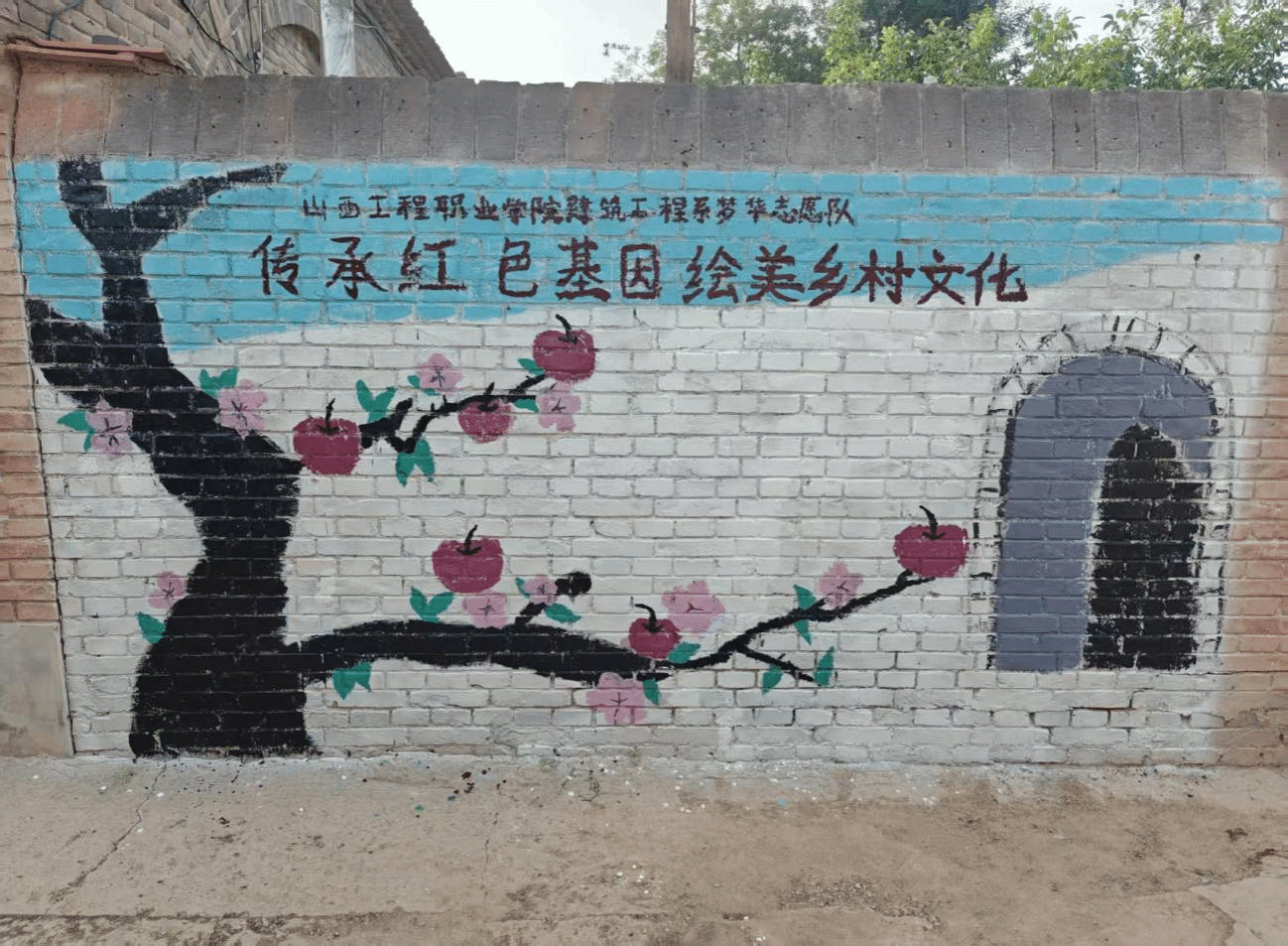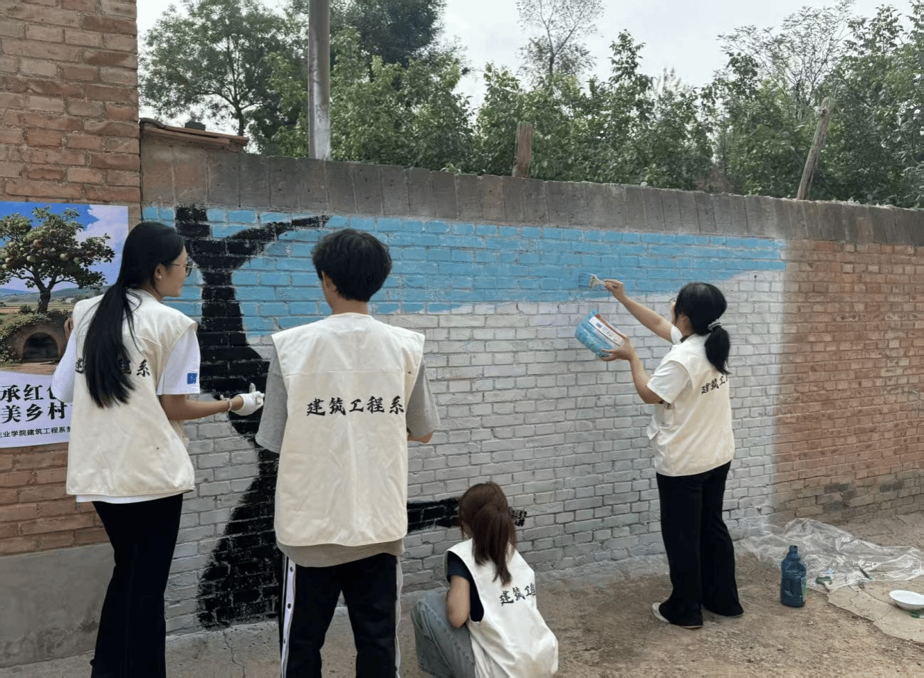建筑工程系暑期三下乡“梦华”志愿服务队于6月25日至6月27日在临汾市大阳镇乔村,开展了主题为“窑红果香,筑梦大阳”的墙体彩绘实践活动。青年学子们以艺术之笔勾勒乡村新风貌,以实际行动助力美丽乡村建设。