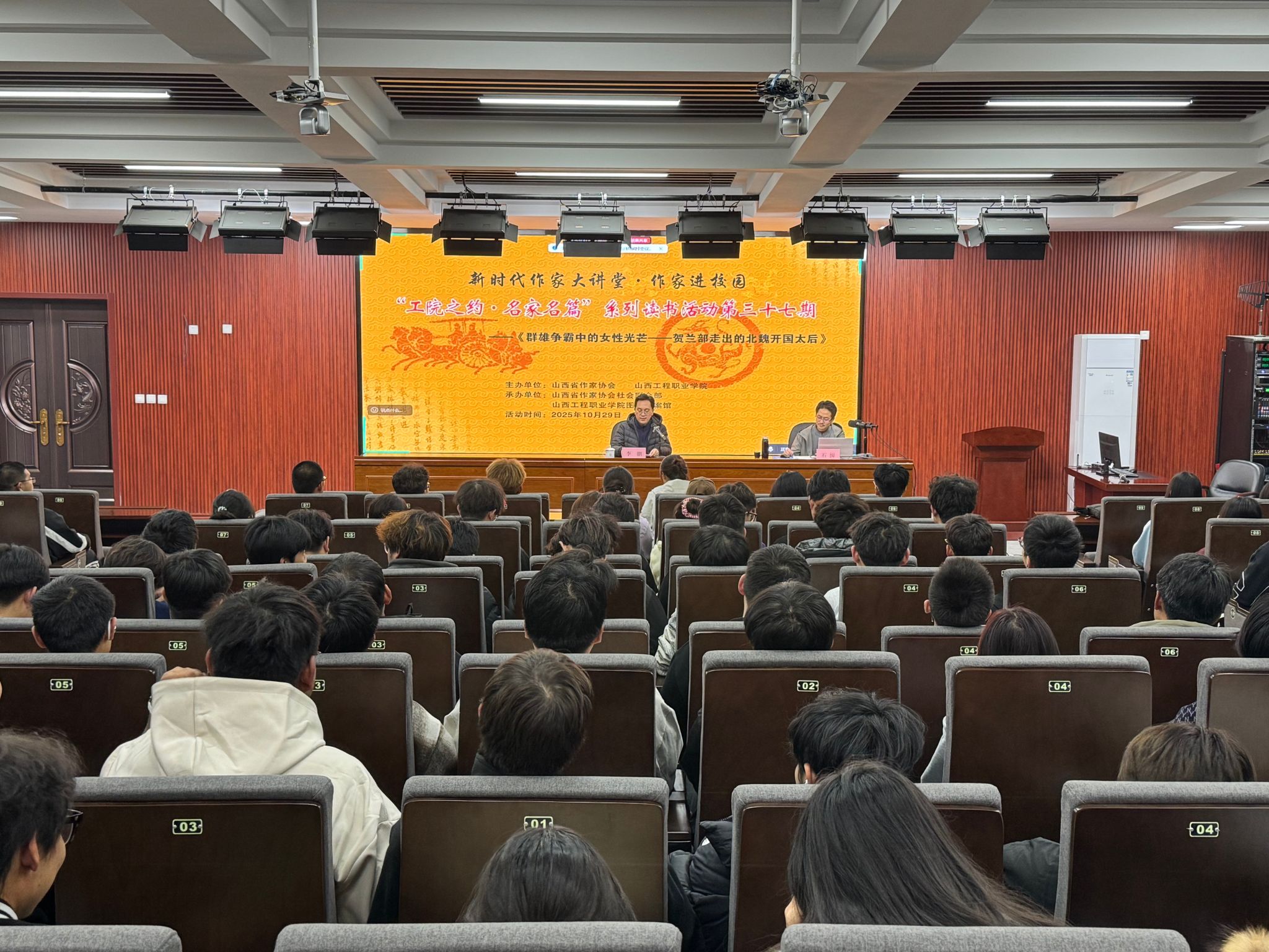 2025年10月29日下午,“工院之约·名家名篇”系列读书活动第三十七期文化讲座在唐槐校区B109会议室如期举办,图书档案馆副馆长李鹏主持,山西国际商务职业学院线上观看直播视频,线上线下共300余名师生参加。